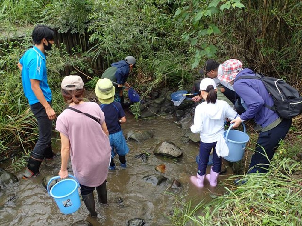 水辺の楽校の水路で魚、エビ、水生昆虫などを採集した後に名前を調べて、生き物たちのすんでいる環境を推測してみよう!